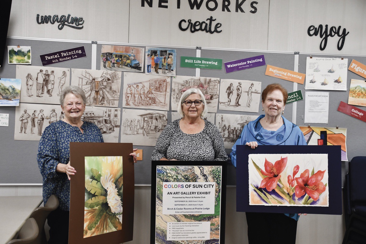 The Pencil and Palette Charter Club is hosting the Colors of Sun City second annual gallery exhibition on Saturday, September 20, from 1–5 p.m. and Sunday, September 21, from 1–4 p.m. The exhibition will take place in the Birch and Cedar rooms at Fountain View, Prairie Lodge.