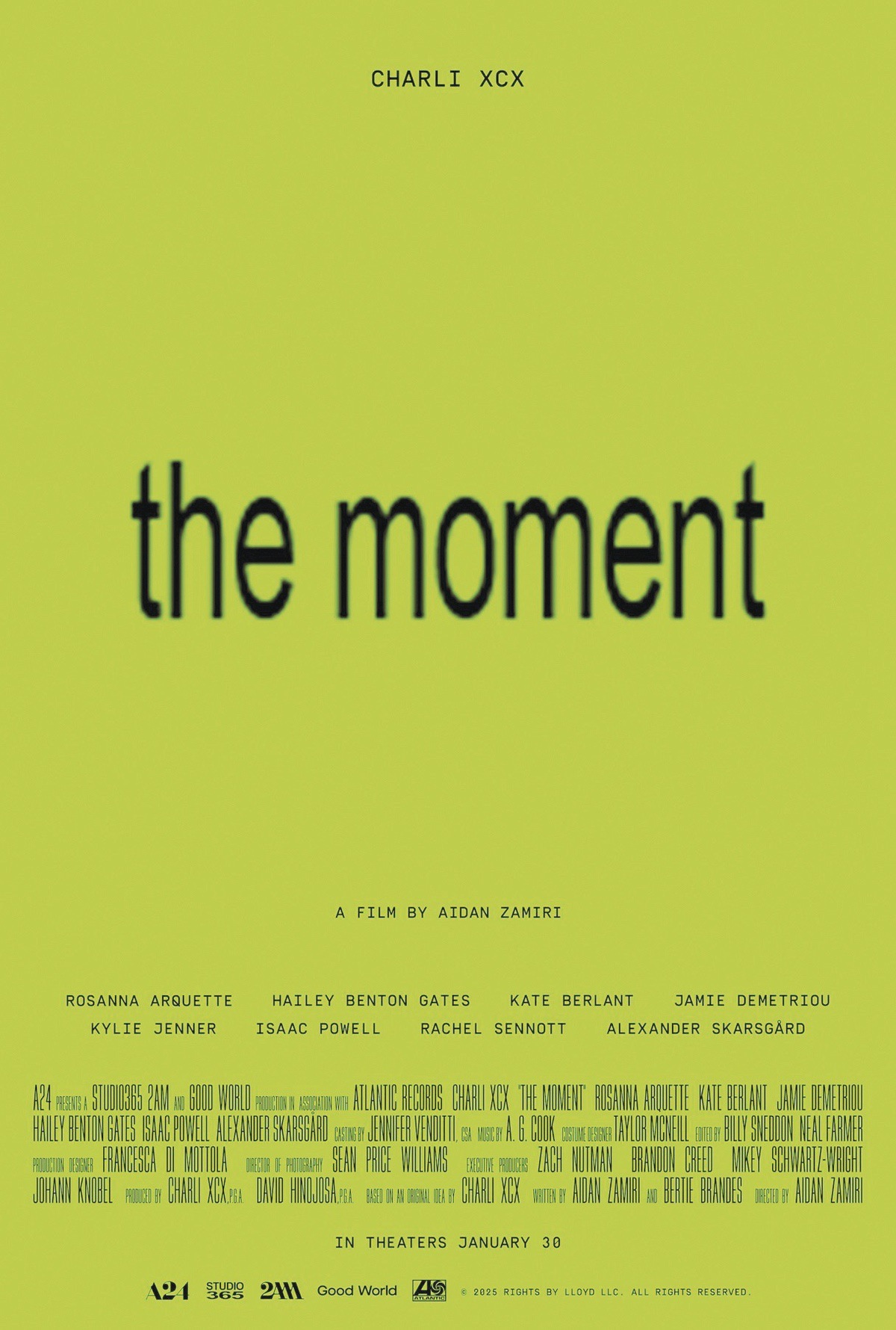 And now for a dose of cynicism. Charli XCX has been able to turn a jaundiced eye toward the music industry in such a unique way. It is fitting that both her and Swift started out on MySpace, two of the savviest pop stars of the internet age. But with her film The Moment, Charli displays the darker side in this “mockumentary.” Here we have the anti-Eras tour. Not that they are diametrically opposed, in so much as they have different ethos. However, the curated worts of Swift’s doc become more complex as Charli’s fabrications get increasingly dire. Direct hits are taken at the commerce behind the artistry. Label heads seek to expand and milk the available products instead of facilitating new ideas. Vultures exploiting a carcass, played beautifully by Rosanna Arquette and Alexander Skarsgard. For the latter, a concert film director who only wants to make the most palatable version of Charli for mass consumption. Brat is taken to the nth degree in a credit card plot point that becomes more central as the film progresses.