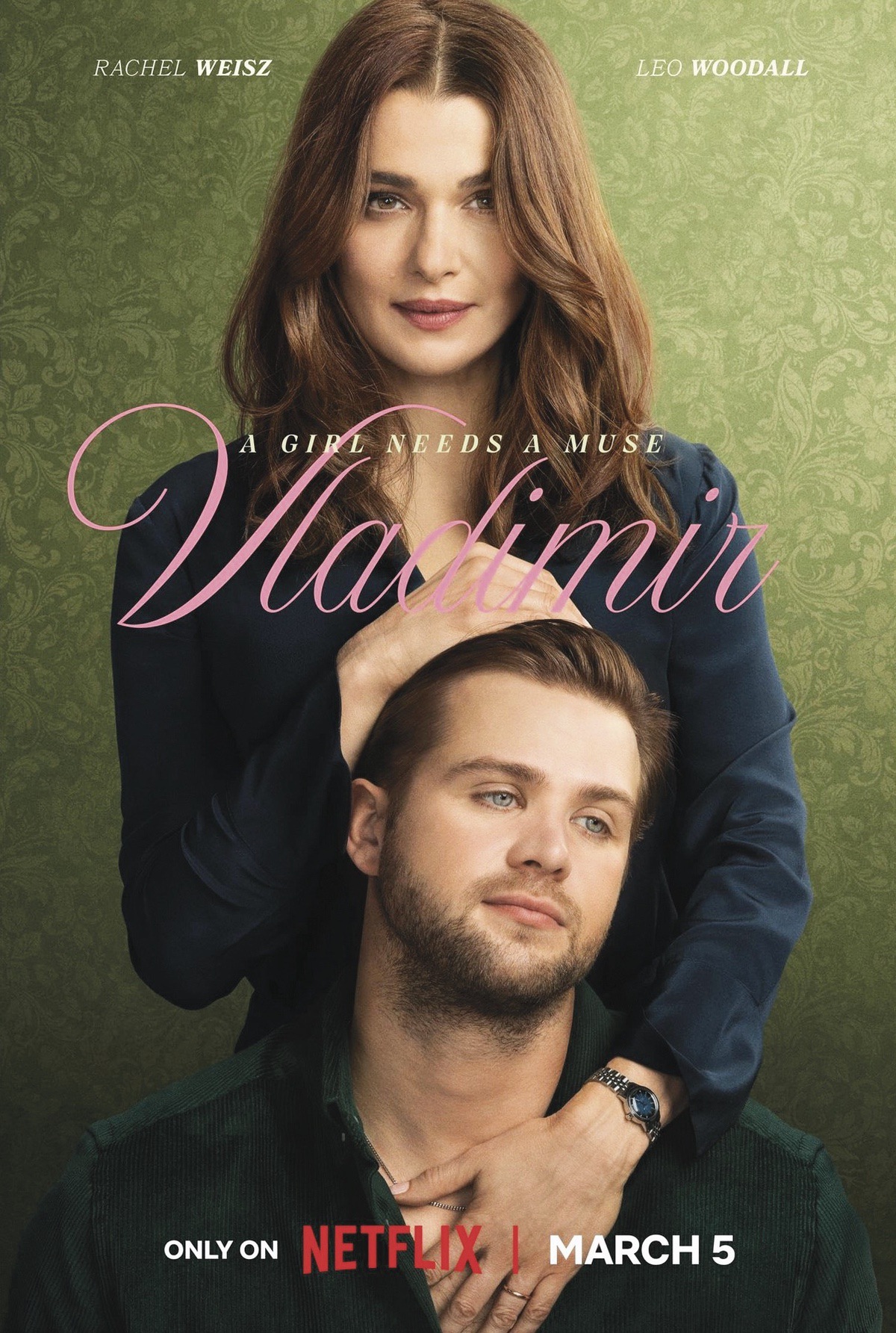 Well even if break comes to an end, that doesn’t mean that college is any less scandalous. Vladimir on Netflix takes on the idea of academia gone wild much better than the film After The Fall did last year. For one, the show runners added some much-needed levity to the equation here. Based on the 2022 novel of the same name by Julia May Jones, she adapts it to the small screen with the help of one Mrs. Rachel Weisz. Having read the novel, I couldn’t think of a better actress to portray this woman. Weisz’s dry sense of comic timing and caustic unreliable delivery made her an instant candidate to play this middle-aged professor of lit studies trying to navigate her husband’s infidelities that have cost him his tenure and position. As she tries to negotiate campus politics on his behalf, in struts the new hot faculty member. Our title character, an effortlessly cool Leo Woodall, is a sweet and attentive. A writer that is married, but that doesn’t stop Weisz from fantasizing about him in languorous dream sequences. Why can’t I have a little dalliance, she insists as much in her direct address to us throughout the series. These exchanges make us complicit in her actions, even if we may not condone them.