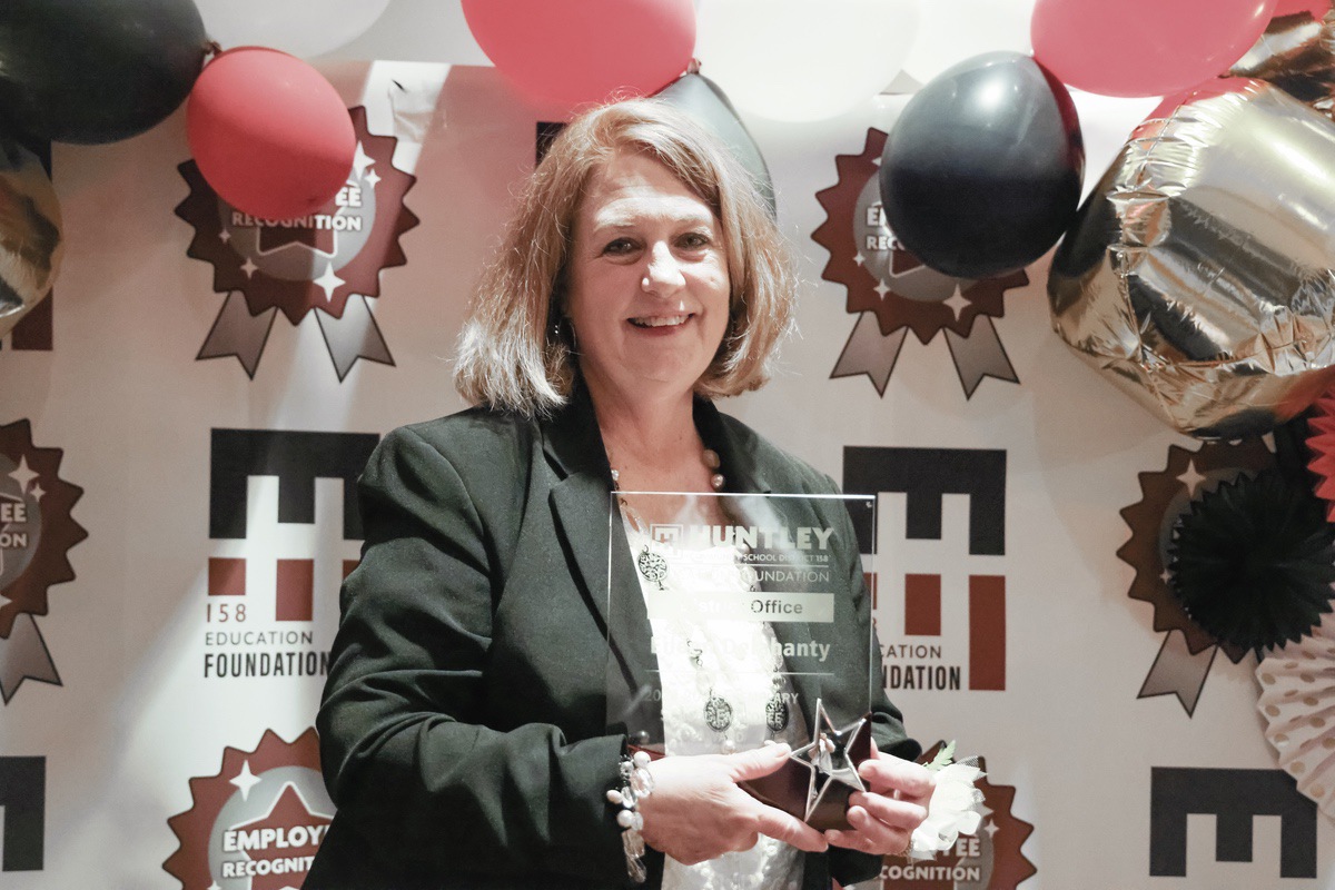 Dolores Fischer, who is a dedicated volunteer at Huntley High School, said, “I’ve been honored to observe Eileen’s unwavering dedication, natural leadership, and collaborative spirit in action. We have worked together on numerous district-wide volunteer events, and most recently, we’ve partnered on an exciting new initiative to build important connections between Huntley High School students and the residents of the Del Webb community. As a Del Webb resident for the past 18 years, and with over 41 years of experience as a mathematics teacher and student leadership consultant at Adlai E. Stevenson High School in Lincolnshire, I can confidently say that Eileen represents the kind of leader who brings people together and drives positive change. Throughout her tenure, she has developed a robust and vibrant volunteer program serving over 2,000 volunteers annually across our district, from kindergarten through high school. Her role has allowed her to interact deeply with our community and identify those rare individuals whose commitment and passion elevate the effect we can have.”